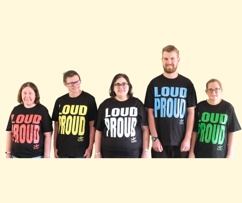 Created to support Tutti choir’s biggest performance yet this Fringe season. You can now show your support for the disability community or your own disability pride by rocking one of our latest T-shirts.